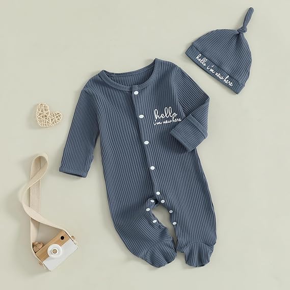 Unisex Newborn Baby Growone-Piece, 3Pcs Snap Buttons Baby Sleepsuits, 100% Cotton Rompers Long Sleeve Boys Girls, Soft & Airy, Footless Babies Grows Sleepsuits for 0-3M/3-6M/6-9M/9-12M